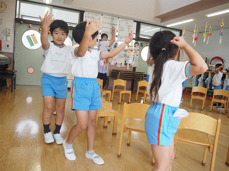 見学では、園舎や園庭、室内温水プールなどの施設をご案内するとともに、実際の保育の様子(うた・もじかず指導・体操・英語あそびなど)をご覧いただけます。教育方針や保育内容、令和8年度の募集要項(予定)についてもわかりやすくご説明いたします。園で過ごすお子さまたちの様子を、ぜひ実際にご覧ください。